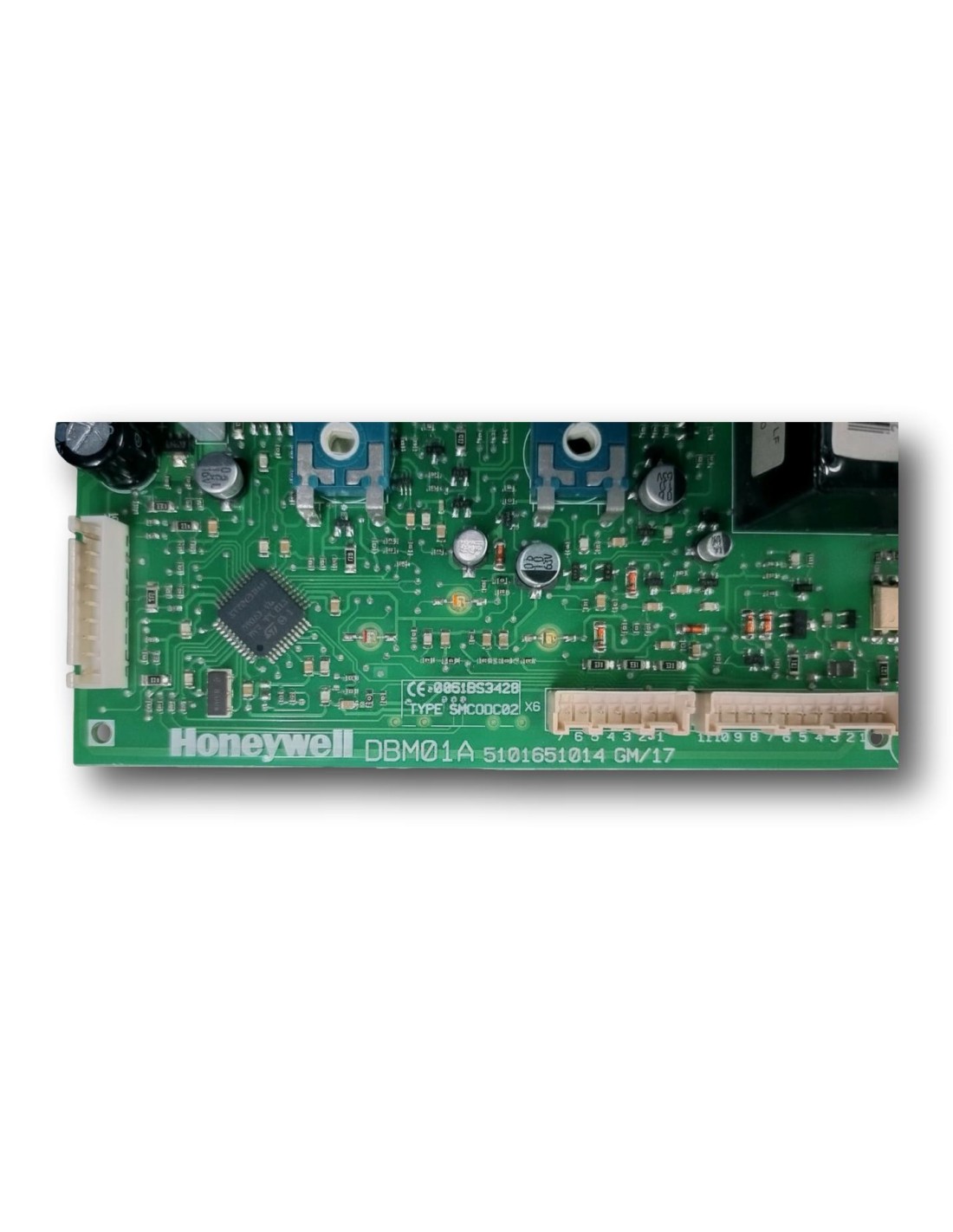 Esta placa electrónica, utilizada de segunda mano, ha sido garantizada por 6 meses para brindarte tranquilidad y confianza en tu compra. Con la marca Honeywell DBM01A y los números de referencia 5101651014 GM/17, CE0051BS3428 y TYPESMCODC02, puedes estar seguro de que estás adquiriendo un repuesto de calidad para tu caldera.