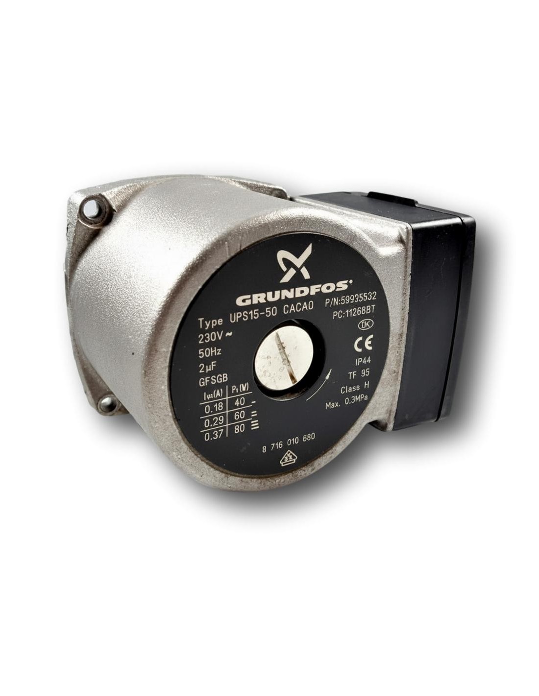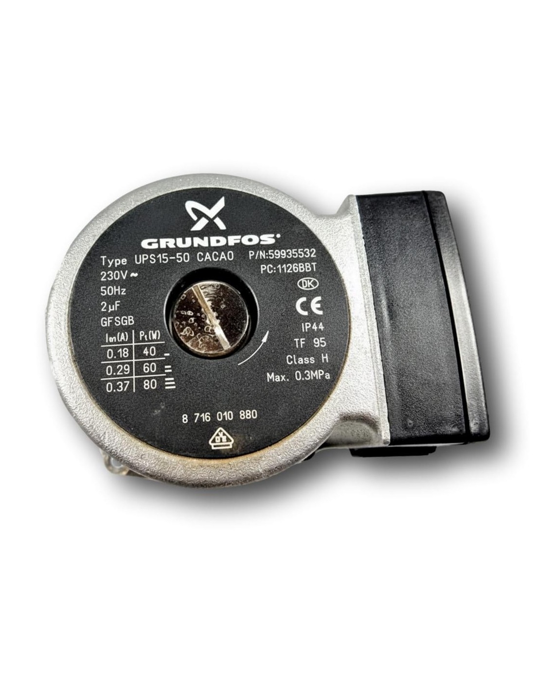 El motor de bomba circuladora es de la reconocida marca GRUNDFOS, modelo UPS15-50. Con el número de parte P/N: 59935532 y el código PC: 1126BBT, puedes estar seguro de que estás adquiriendo un repuesto de calidad y confiabilidad.